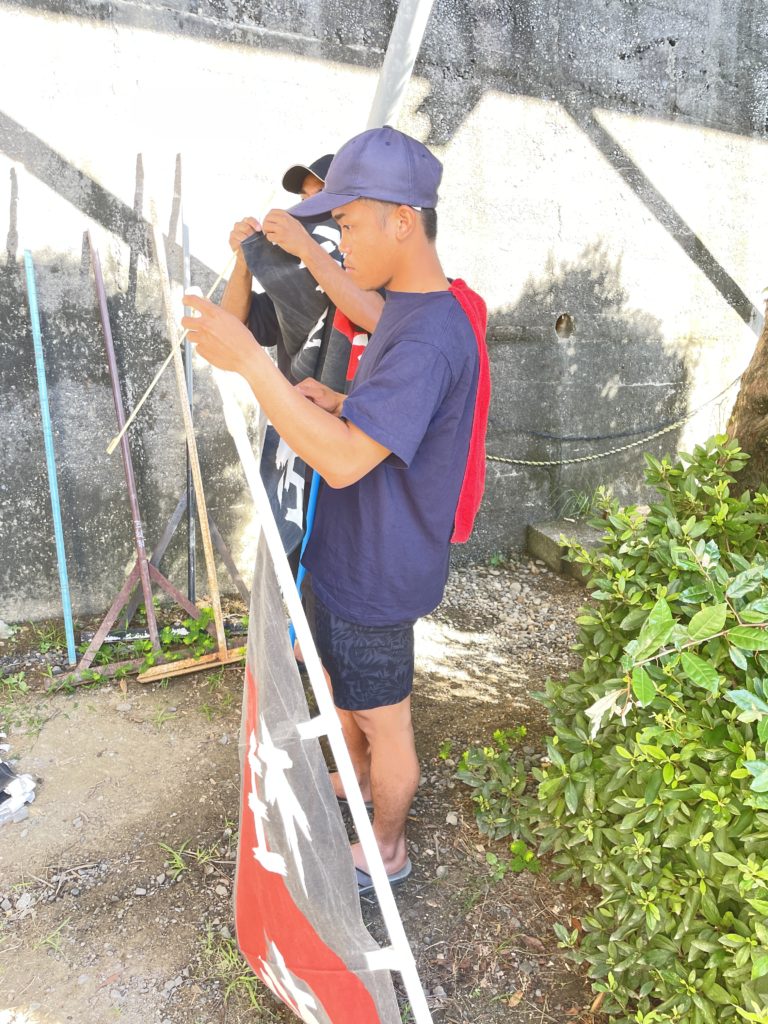 地域行事への参加 / フレックス協同組合 / By フレックス協同組合 柱松花火(地域行事)の準備のお手伝い 8月16日(土)新宮市佐野で開催される佐野柱松花火の準備に参加しました。害虫駆除や五穀豊穣を願うお祭りで、15mほどの高さの御柱に設置された籠(の中の花火)に、ロープにつけられた松明をグルグル回し、遠心力で放り投げ、見事に籠に入れば、花火に点火され打ちあがる仕組みとなっている。そのお祭りの準備として、町中にのぼりやポスターを掲示するということで、お手伝いさせていただきました。これは、彼らが技能実習という活動し、それを多くの地域住民の方に理解と親睦を深めるために参加しております。また、他の活動にも今後参加してまいりますので、ぜひお声掛け頂きたいと思っております。